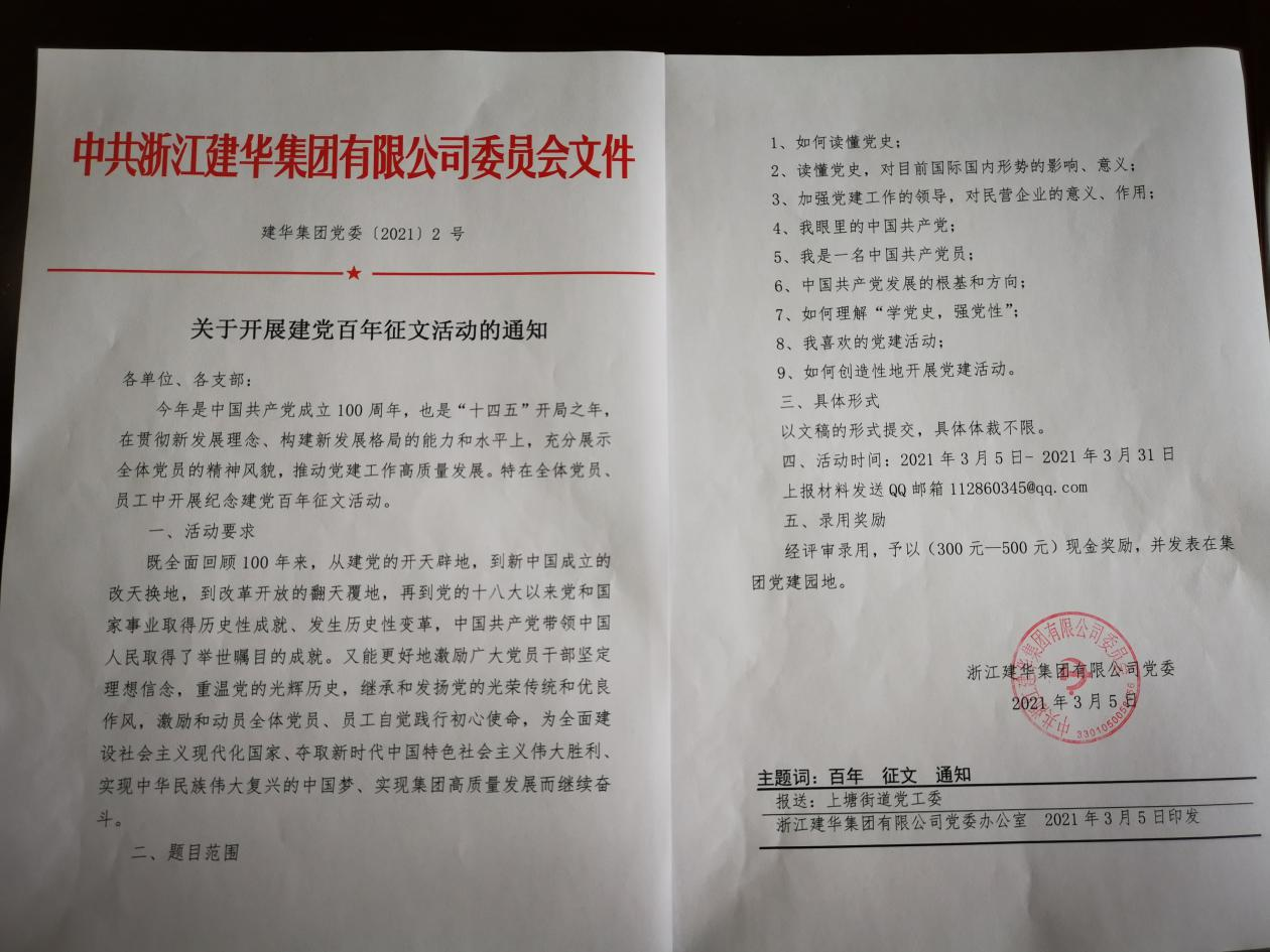 通过征文活动,达到了学党史、悟真理、辨是非、明方向的作用,下一步将按照《2021年建华集团党建工作思路》的安排,继续开展纪念建党百年系列活动,心怀感恩,凝聚力量,新征程再出发。